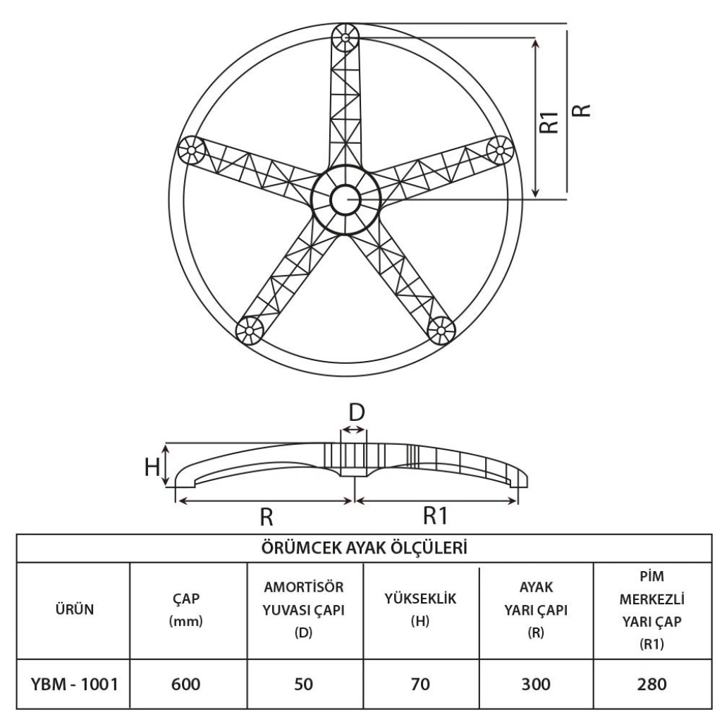 Plastik Ayak 60 cm çapındadır. Bu sayede gerek yönetici, gerek çalışma, tüm seviye koltuklarda kullanılabilir.